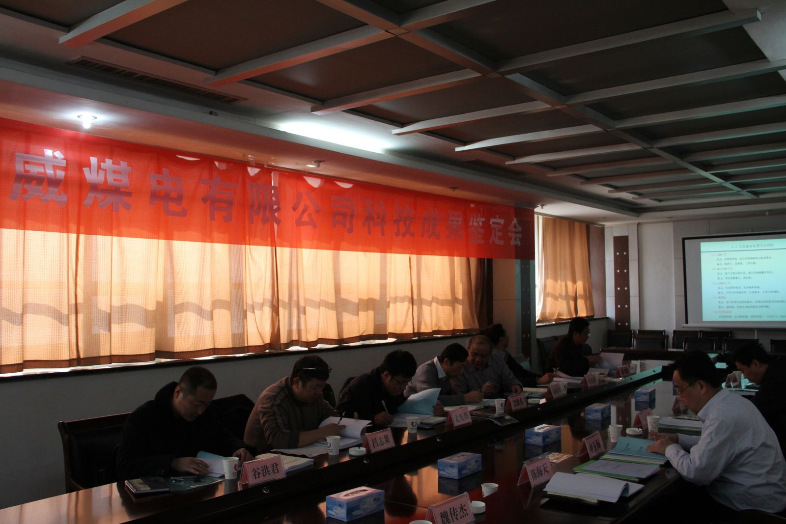 经过公司生产技术部一个多月的精心准备,2014年12月6日下午13时,在金威煤电公司办公楼二楼会议室成功召开了济宁金威煤电有限公司2014年科技成果鉴定会,对金威煤电公司引进吸收再创新的"新型活性涂层扩张阴极技术的研究与应用"、"含汞废水处理及其综合利用技术研究"、"循环流化床锅炉烟气喷氨脱硝技术的研究与应用"、"循环流化床炉内钙法脱硫技术研究与应用"等四项科技项目进行了成果鉴定。