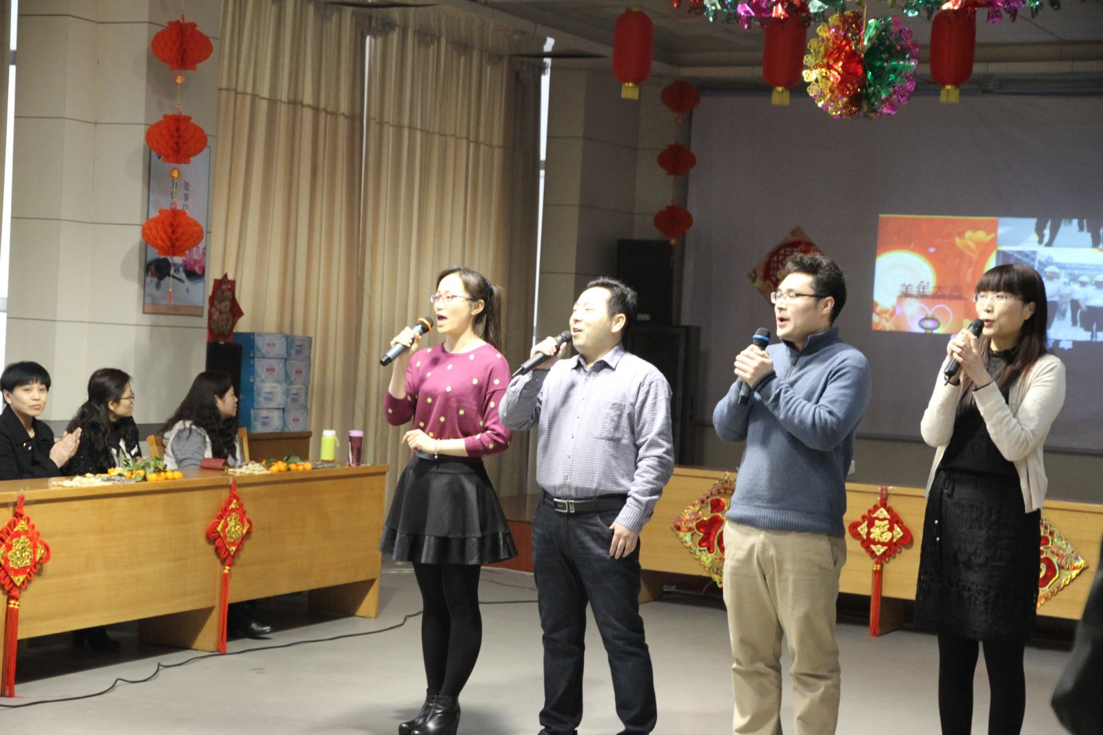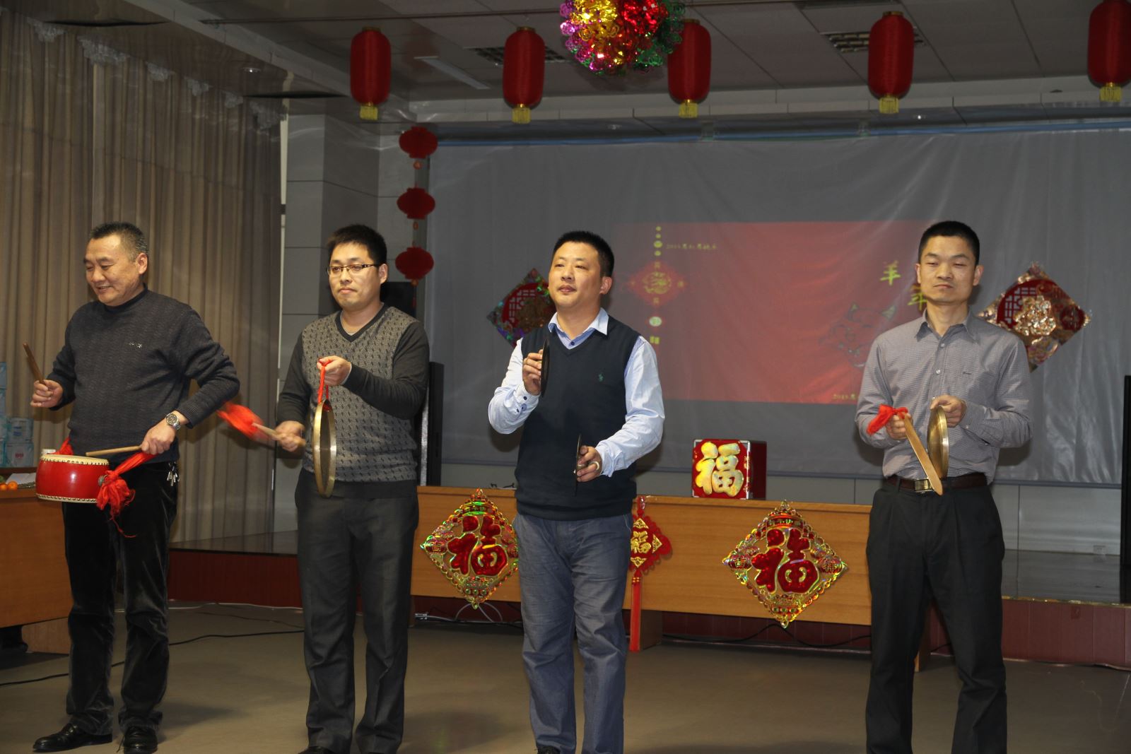 茶话会以充满喜庆祥和的歌曲《三羊开泰迎新春》拉开序幕,机关人员自导自演的三句半《巧用新字话鲁泰》、手风琴《鸿雁》和歌曲《中华民谣》《最真的梦》《为了这一天》《壮志在我胸》《想说爱你不容易》等深受好评,大合唱《相亲相爱一家人》、《团结就是力量》引起大家阵阵掌声。副总经理薛培华演唱的《千纸鹤》、副总经理关延忠参与的大合唱《众人划浆开大船》、副总经理王付清演唱的《甘心情愿》赢得了叫好连连。整台晚会营造了热烈喜庆、欢乐祥和、团结奋进、昂扬向上的良好氛围。游戏你演我猜、爱的组合,引得大家掌声、笑声此起彼伏,热闹非凡。游戏送祝福,更是表达了大家对公司、对机关人员新年的良好祝愿。