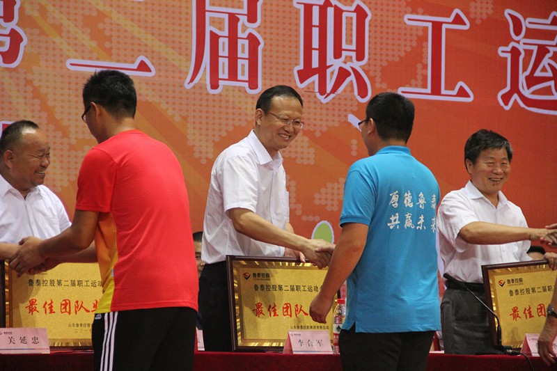 下午14:00时,举行了运动会闭幕式,经过激烈的比赛。太平煤矿、鹿洼煤矿、鲁泰化学代表队分获团体总分前三名。闭幕式上,为获奖团体和选手颁发了奖杯。关延忠致闭幕词。他指出,运动会拼搏的是过程,熔炼的是精神,打造的是品质,提高的是体能,增强的是凝聚力,激发的是战胜困难的斗志。运动场上的胜负容易忘记,而从中体现出来的"团结协作、顽强拼搏、奋勇争先"的精神将历久弥新,也将使干部职工从中长期受益。只要我们每位干部员工充分发挥运动会中体现出来的那股热情、那股拼劲,增进沟通,凝聚合力,相互学习,奋力拼搏,集团公司的改革发展必将赢取新的、更大的胜利!