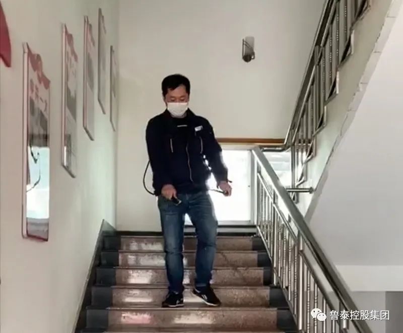 他每天坚持定时对办公楼过道、房门、门把手、地面、墙壁、水龙头、门窗、卫生间等高频接触部位立体式、全方位进行彻底消毒,确保不漏掉每一流程,不放过每一个角落。还要承受消毒水刺鼻的气味,沉重的消毒设备对体力也是相当严重的考验,他没有丝毫怨言,在他看来,肩上背的不单单是一桶药水,还有沉甸甸的责任和使命,他要确保消毒过的地方是安全的!       “我现在连吃饭都闻不到菜香,鼻子里全是消毒水味儿,看来肺炎病毒这下是近不了我的身喽。”他开玩笑的说。       “疫情当前,责任在肩,疫情不解除,消毒不停歇!”田素雷是这样说的,也是这样做的。       面对疫情,田素雷毫不退缩,反而在日常消毒作业基础上加密了消毒频次,对重点区域反复进行消毒,不给病毒留一分一毫的传染空间。一个完整的消杀过程要经历一个多小时,虽然很累,但他深知自己身负的重要使命,要为全厂职工开辟出一片“净土”!让我们为他致谢!致敬!(刘业飞)