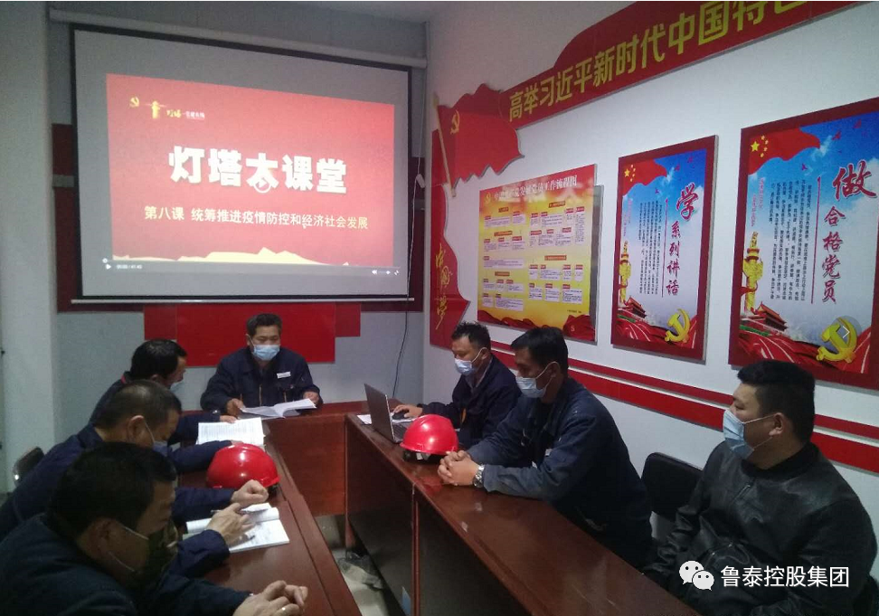 3月26日,鲁泰环保建材各党支部集中观看了“灯塔大课堂”第八课《统筹推进疫情防控和经济社会发展》。该公司班子成员以普通党员身份参加活动。
